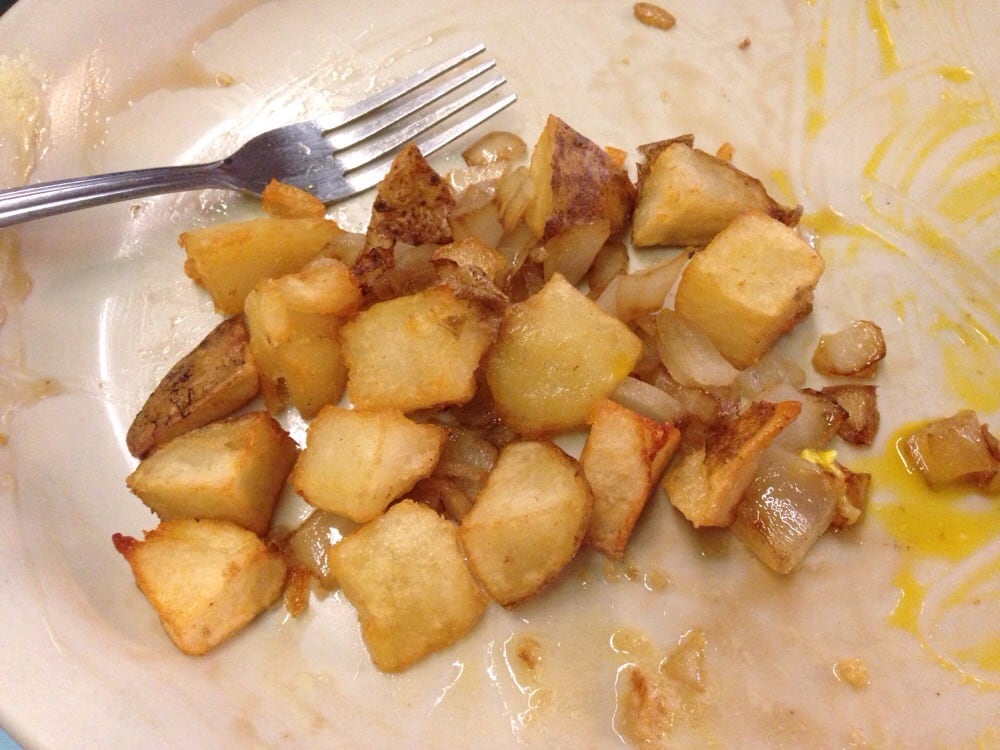 3 eggs, green pepper, onion, chili, cheddar cheese and toast.